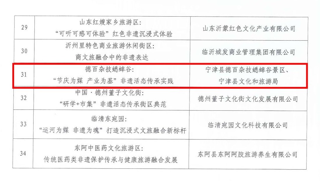 本次评选中,宁津德百杂技蟋蟀谷凭借“节庆为媒 产业为基”的非遗活态传承实践模式脱颖而出,成为全省文旅融合发展的新标杆。