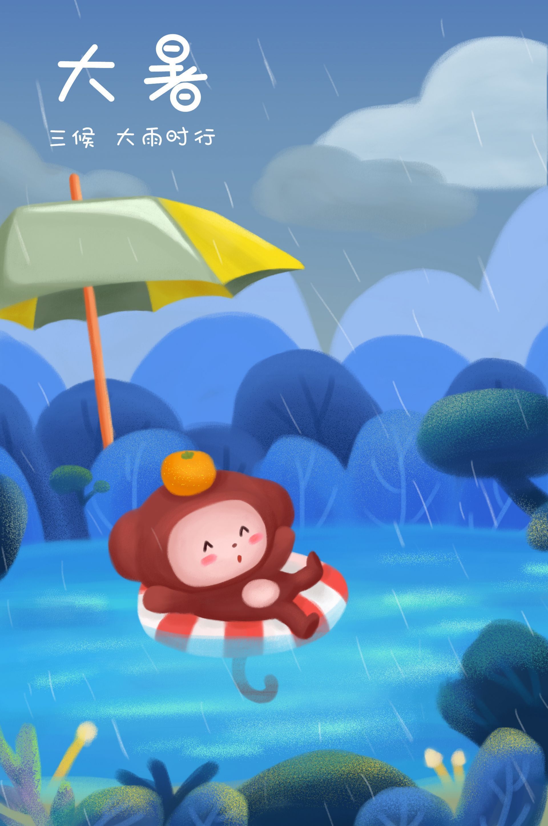 大暑时节,因湿气积聚而时常大雨滂沱,经常有大的雷雨。