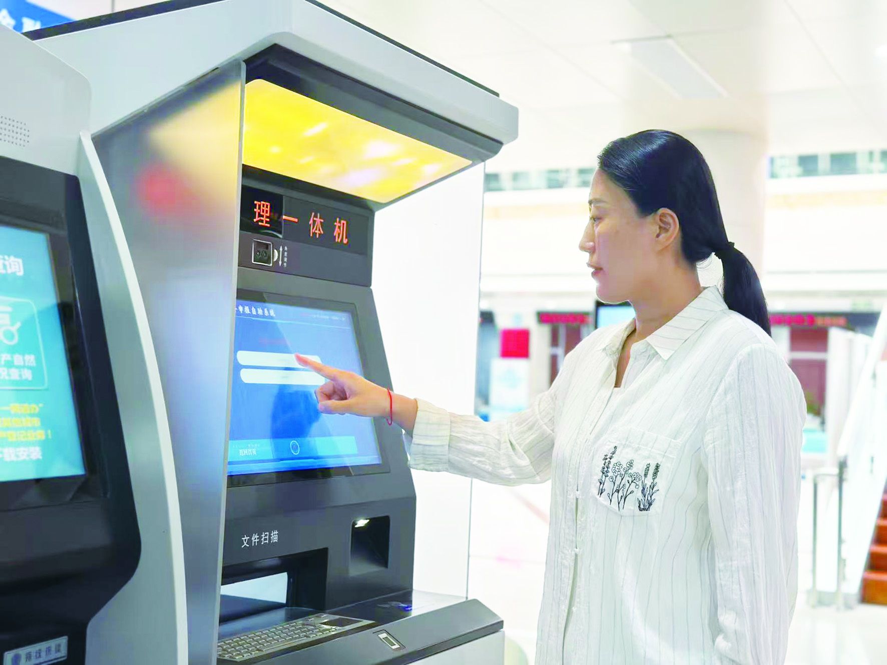 ▲企业通过自助受理一体机,高效办结转移登记业务