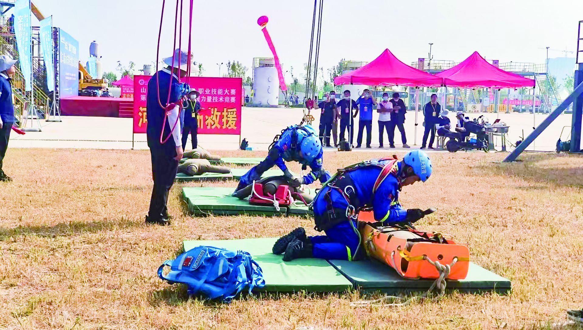 禹城蓝天救援队队员在技能竞赛比赛现场