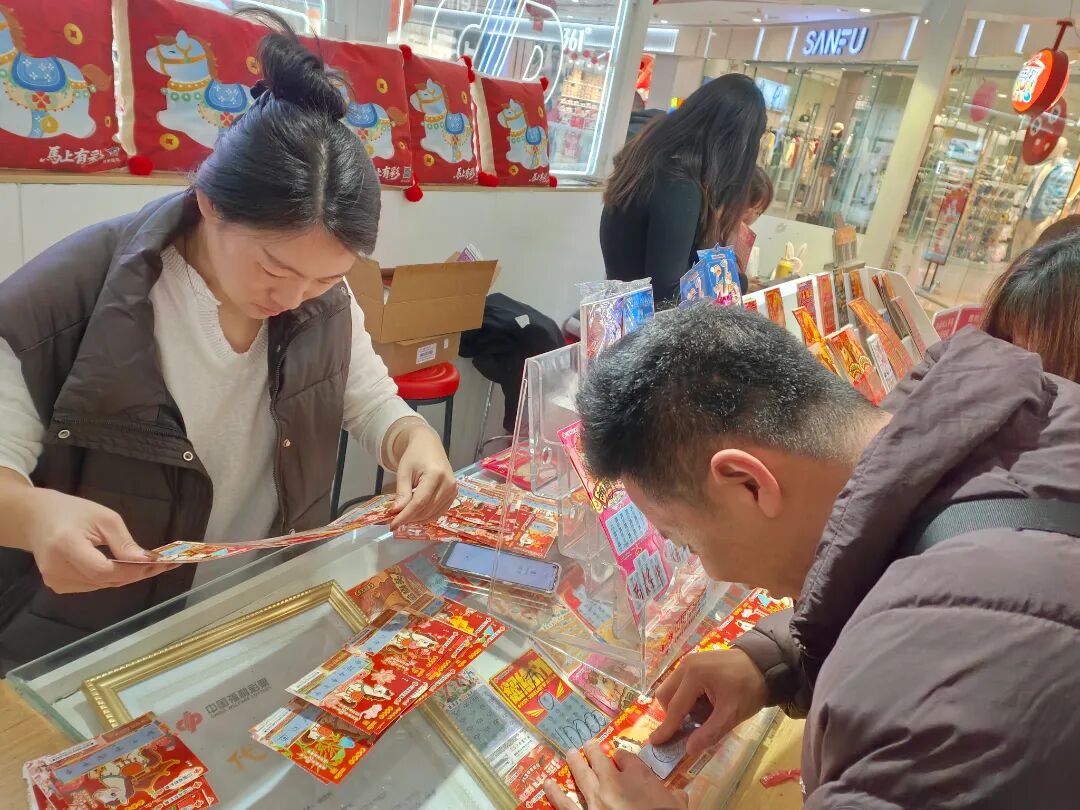 在万达广场、澳德乐时代广场、银座商城等主城区热门商圈,醒目的福彩小卖场摊位前人头攒动。喜庆的装饰、琳琅满目的“丙午马”系列生肖票,吸引了不少市民驻足。大家在逛街之余,随手刮一张彩票,既为节日添彩,也为公益助力。