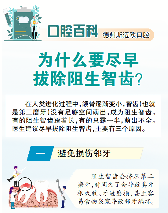 口腔百科 | 德州斯迈欧口腔:为什么要尽早拔除阻生智齿