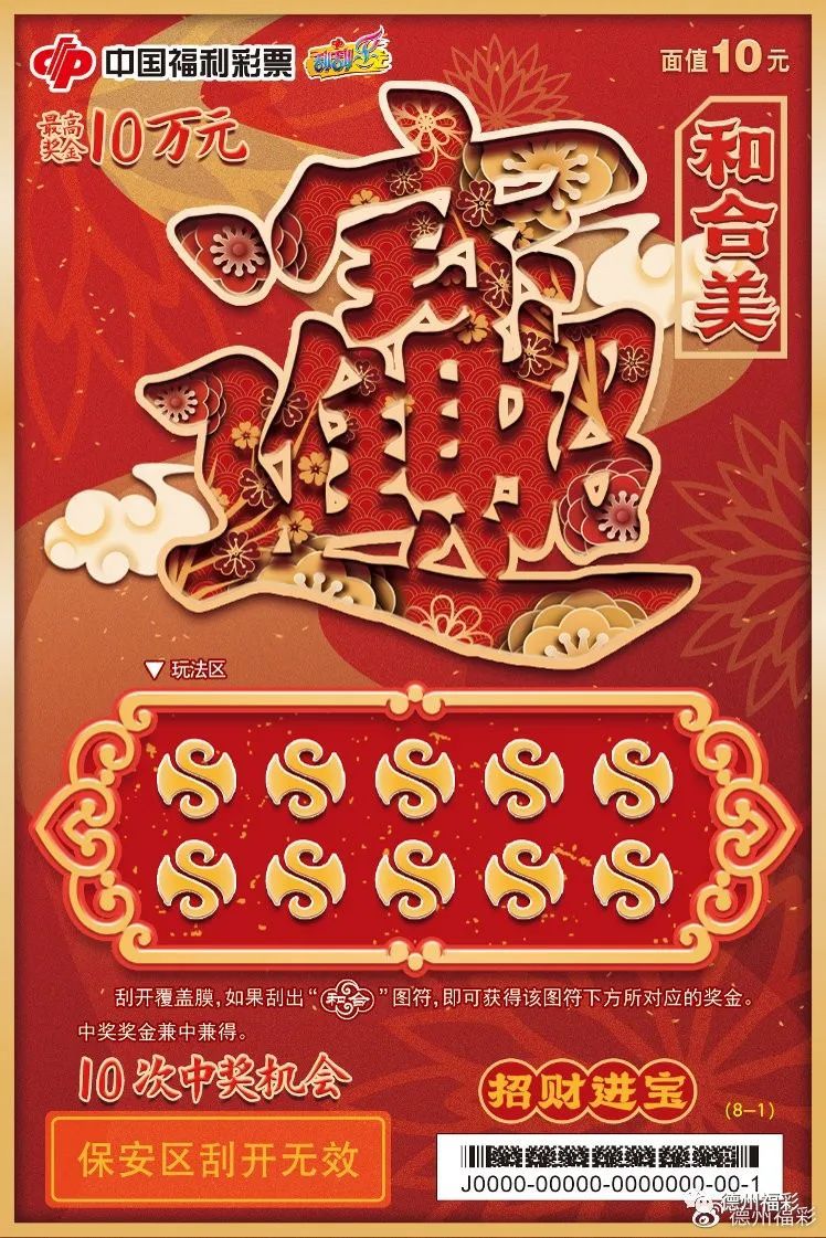 “和”是中华民族的人文气质,也是千百年继承下来的传统美德。近日,福彩推出刮刮乐“和合美”新票,寓意“和”聚财至,福随“合”来。新票上市一周,德州幸运彩友刮出头奖10万元。