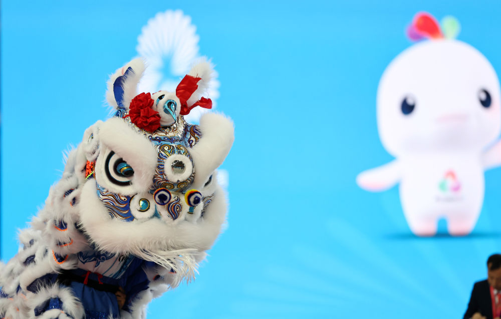 十五运会开幕式上,伴着黄飞鸿电影主题曲《男儿当自强》的热血旋律,百头醒狮结合VR技术震撼登场,以刚劲舞姿赢得现场观众赞叹欢呼,也让家国情怀的身份认同、民族振兴的情感认同,激荡在屏幕前的亿万中华儿女心中。