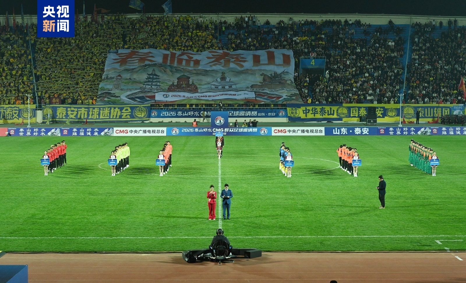 3月28日,2026CMG群众足球邀请赛第二站在山东省泰安市泰山体育场开幕。中央广播电视总台党组成员、副台长余俊生出席开幕式,山东省政府副省长王桂英宣布开幕。