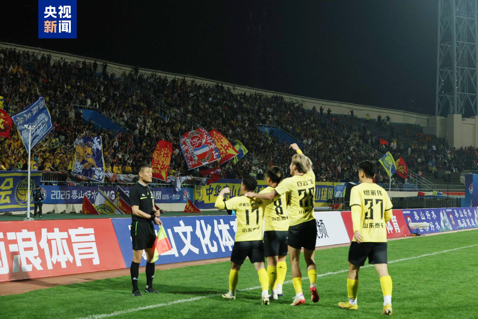 山东泰安队对阵内蒙古呼和浩特队的比赛吸引了21613名球迷到场观赛。上半场,双方在进攻端均有制造威胁,但未能攻破对手球门。下半场,泰安队持续在左路发起进攻,第53分钟,27号杨浩宇左路传中,28号白云飞头球打破僵局,泰安队1比0领先。第86分钟,泰安队替补登场的8号谭有传,利用角球机会,在禁区内抓住机会抢射得分。最终,山东泰安队2比0战胜内蒙古呼和浩特队,收获A组小组赛首场胜利。