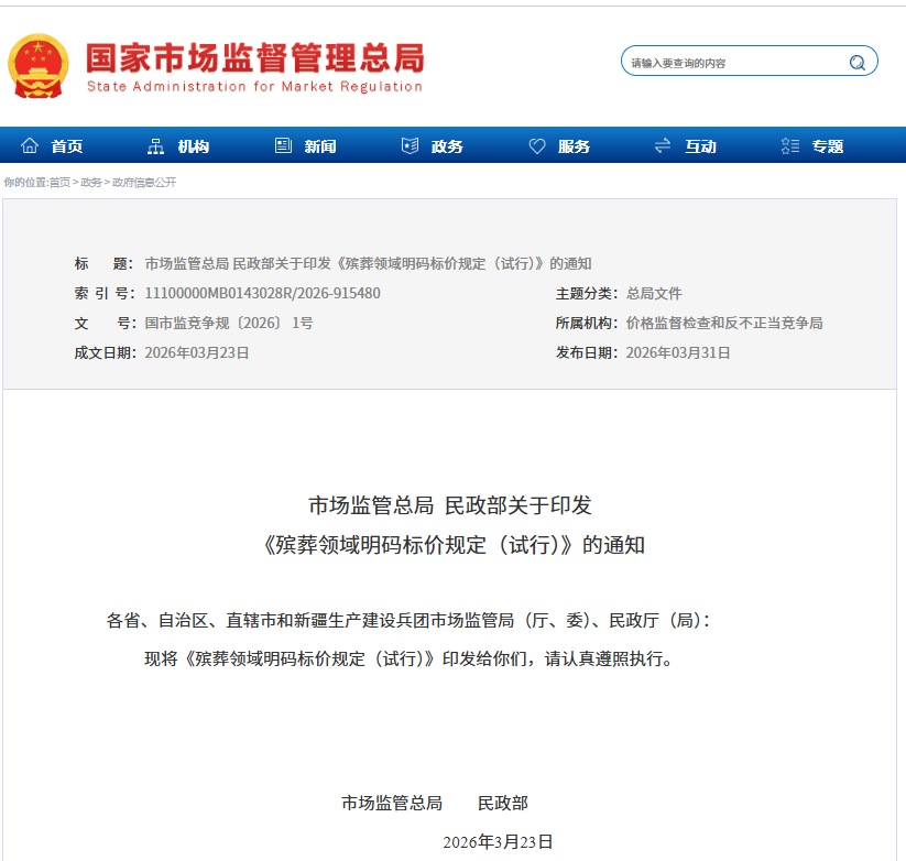 现将《殡葬领域明码标价规定(试行)》印发给你们,请认真遵照执行。