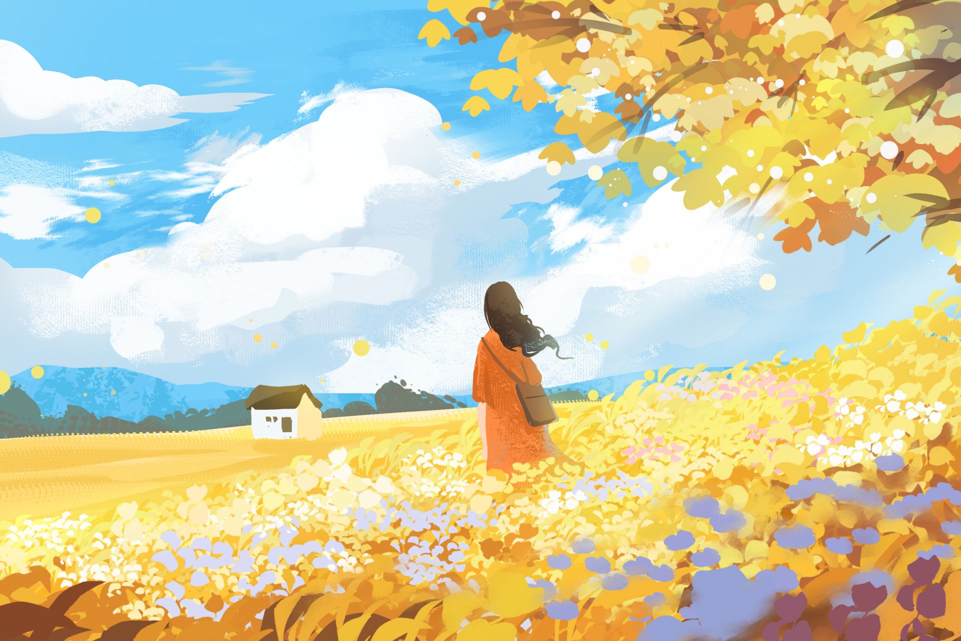 久馥紫薇呈紫气,将收金稻遍金黄。