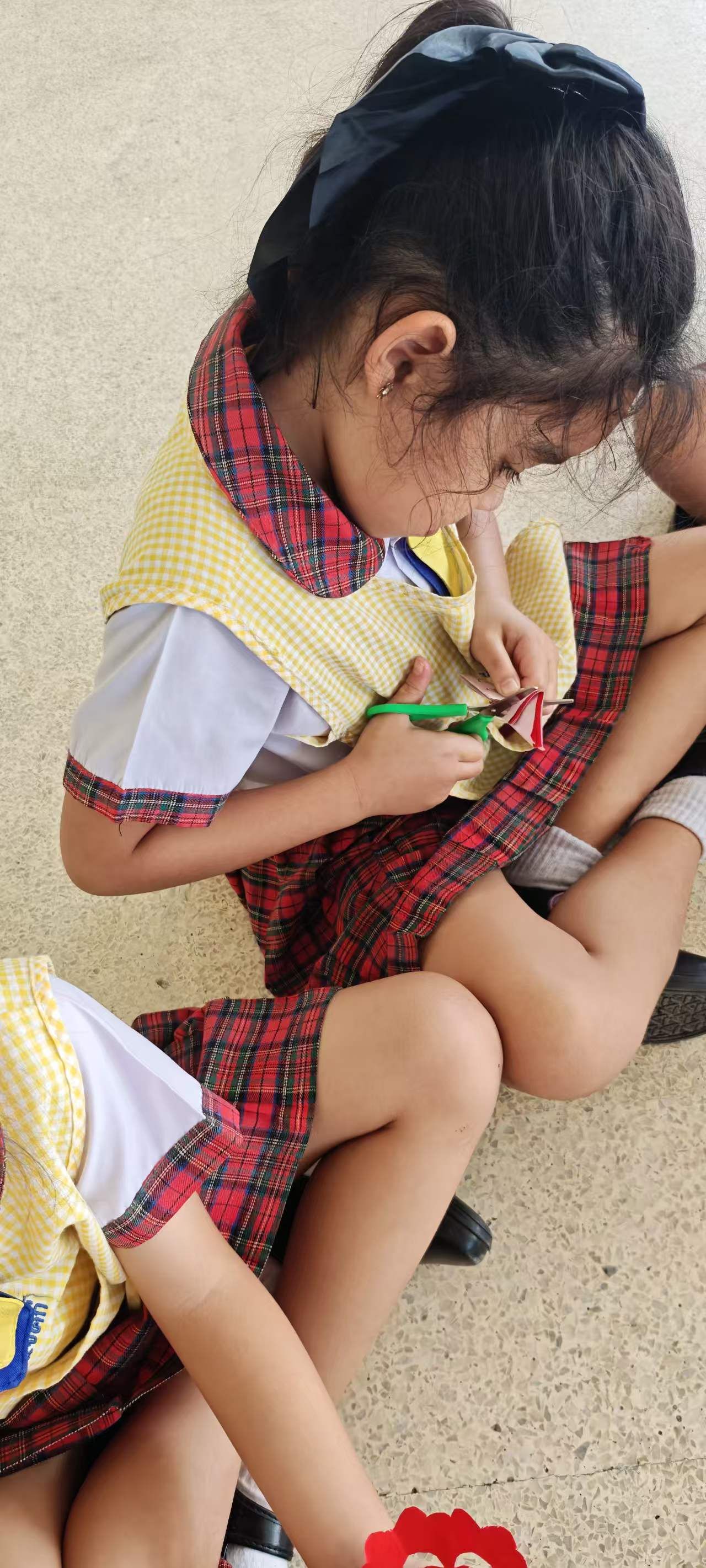 二十七名一年级学生聚集一堂,沉浸于中国传统文化的魅力之中。在老师的指导下,孩子们尝试了中国的剪纸艺术——这项历史悠久的手工技艺。他们手握小巧的剪刀,小心翼翼地将红色纸张剪裁成生动的节日图案,脸上洋溢着专注与喜悦的神情。这种亲身体验让这些小学习者得以直接感受中国春节浓厚的节日氛围。