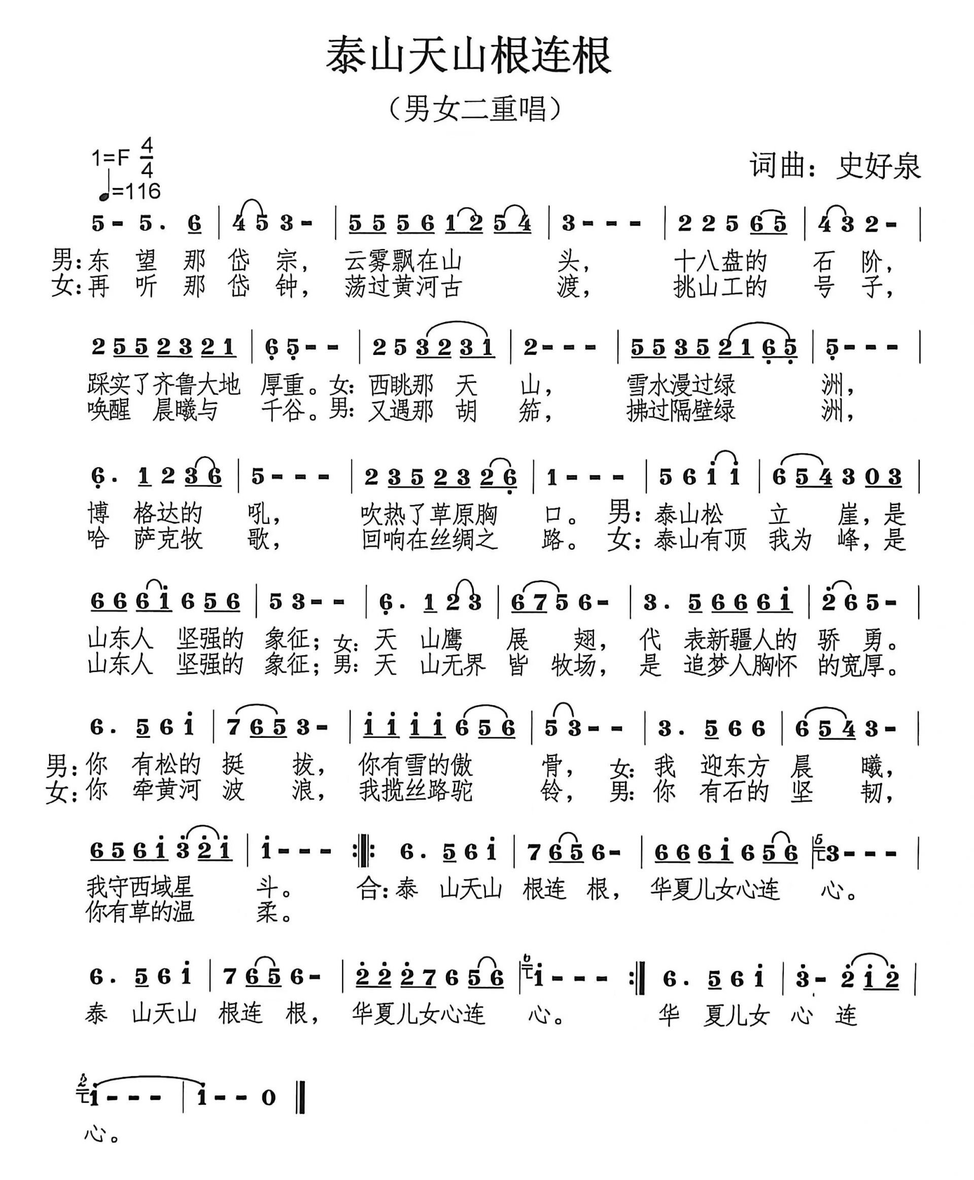 词曲|史好泉:泰山天山根连根