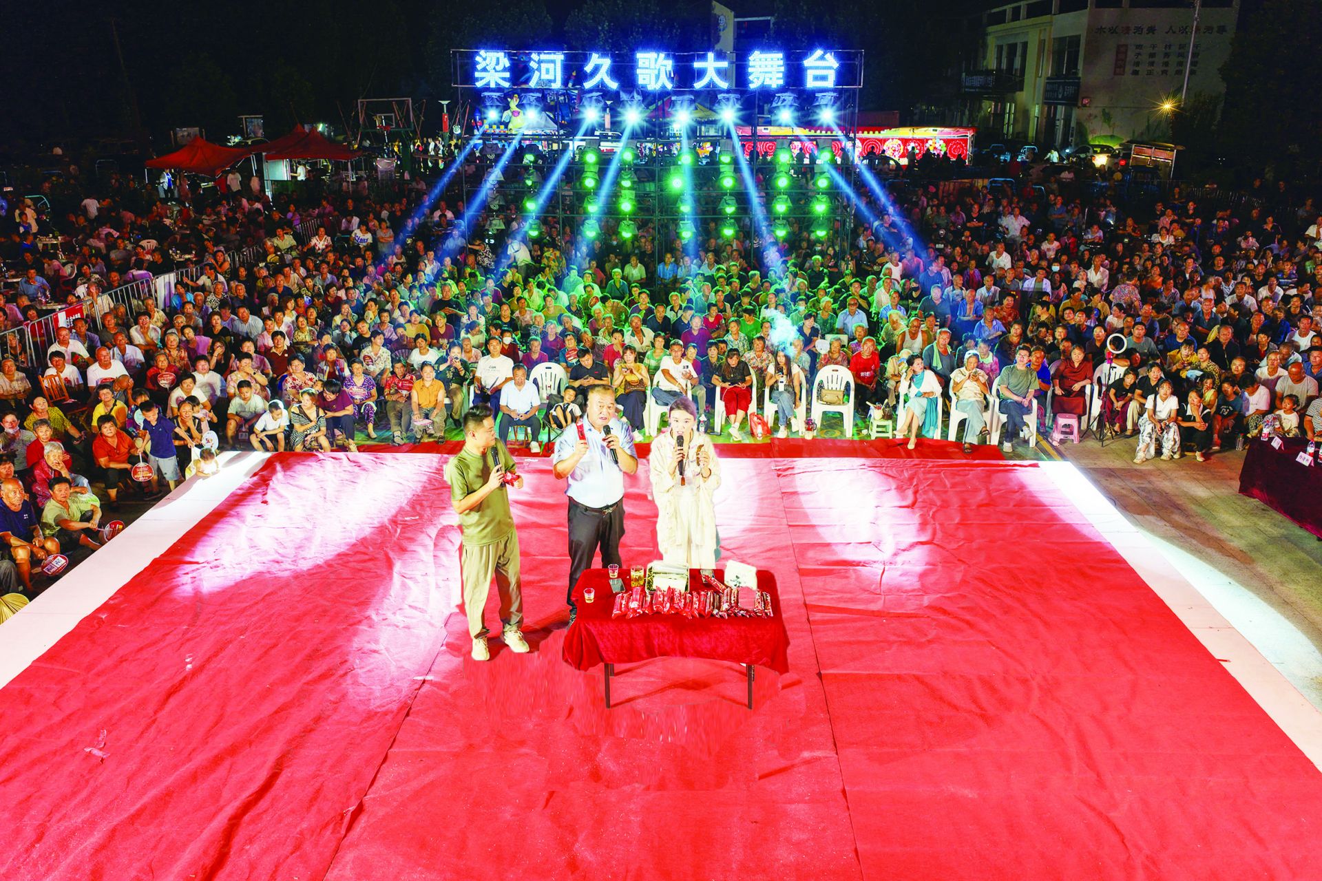 去年夏季,辛寨镇梁河新村文明实践广场“久歌大舞台”上,本土歌手献唱、村民戏曲登台、广场舞活力四射,台下掌声、喝彩声接连不断,将乡村夜晚的热闹劲儿拉满。