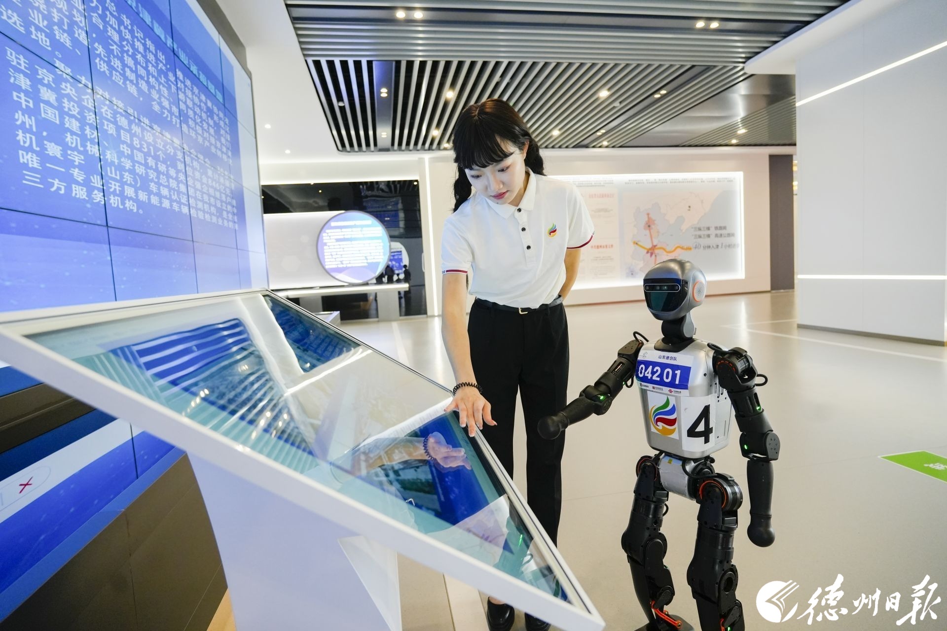 “您好,我是‘小创’,有什么可以帮您?”9月12日,在位于天衢新区的京津冀创新转化(德州)中心,一位身高1.2米、体重30公斤的“新同事”——人形机器人“小创”,正以流畅的语言与来访客商亲切交流。它不仅能够清晰介绍中心概况,还能灵活回应各类提问,展现出近乎真人的交互能力。