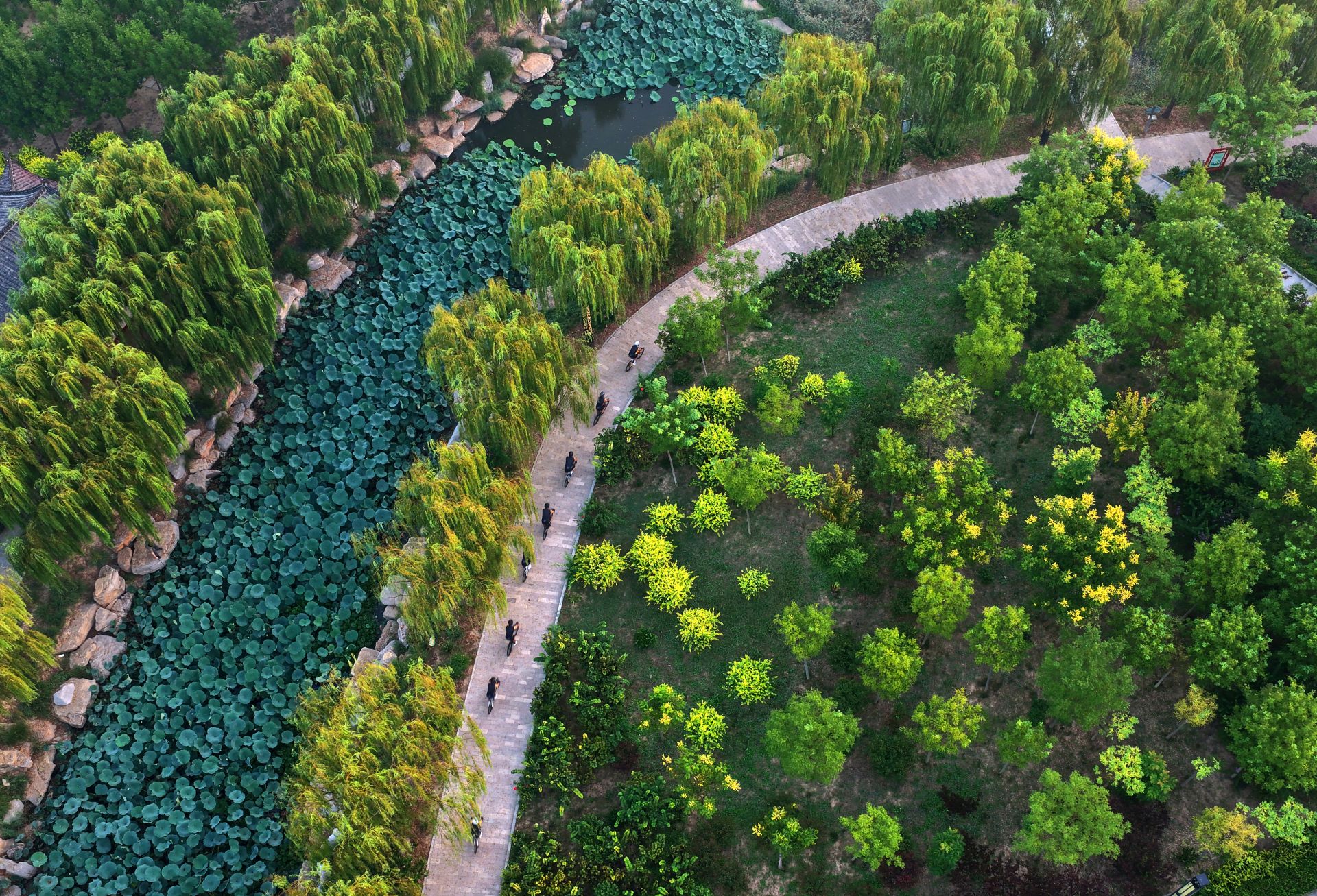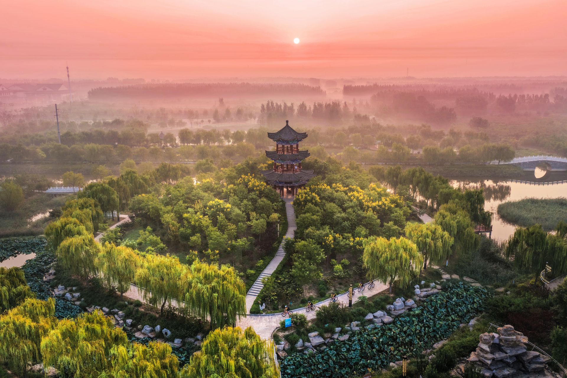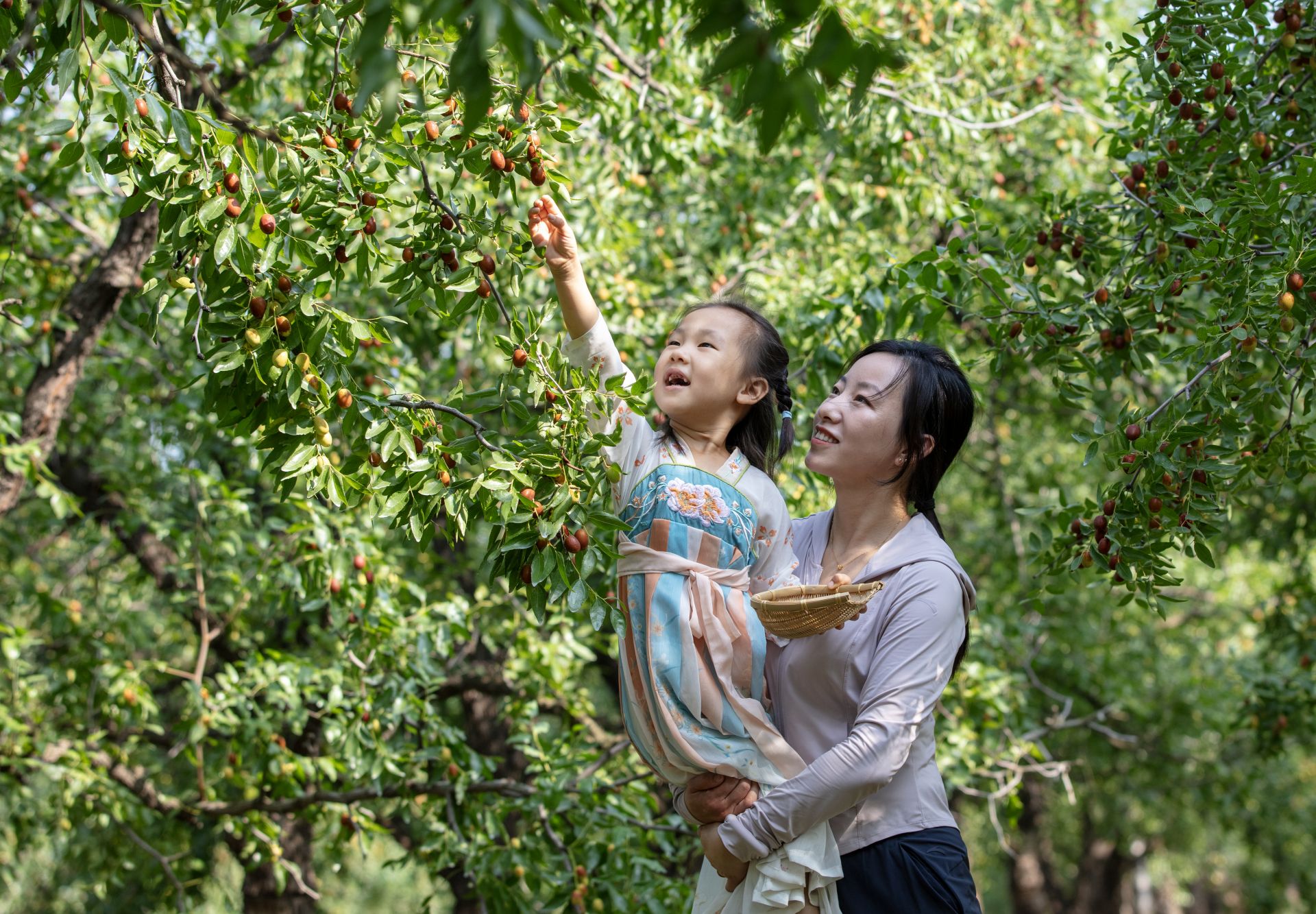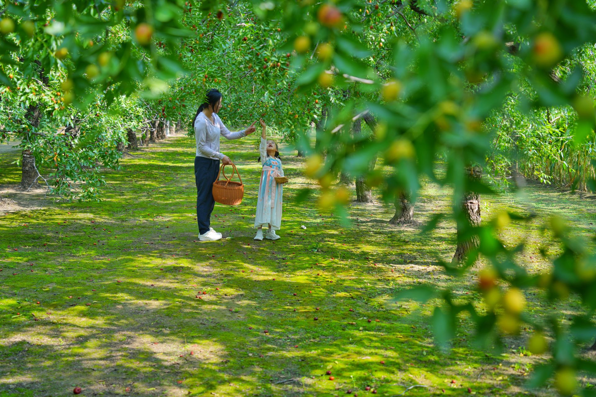清晨枣博园、望海亭下骑行者、枣林间跑团与绿色枣林相映,勾勒 “生态乐陵” 活力。朱集镇千年枣林中,枣农打枣、游客采摘、老枣树下农民画教学的场景,既显千年枣文化底蕴,更绘乡村振兴新图景。