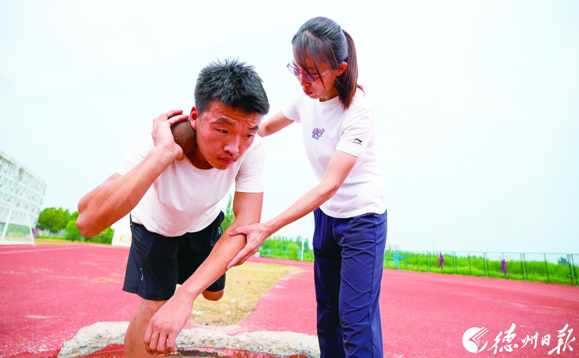 “手臂摆幅再大!”“注意节奏,别慌!”日前,在位于禹城市的德州科技职业学院操场上,39岁的王玉芹俯身向前,正帮一名视障学员调整起跑姿势。不远处,几名肢体残疾的学员扶着辅助器械练习抬腿,汗珠挂在脸上。眼下,这支队伍在她的带领下,正全力备战明年的山东省残疾人运动会。